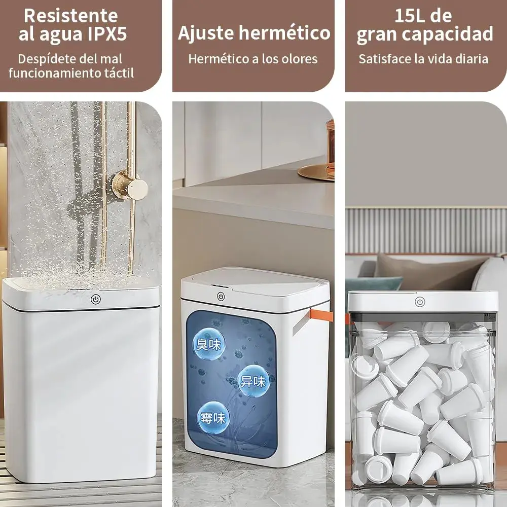 Cubo de Basura Automático con Sensor de Movimiento para apertura manos libres.